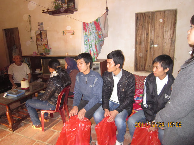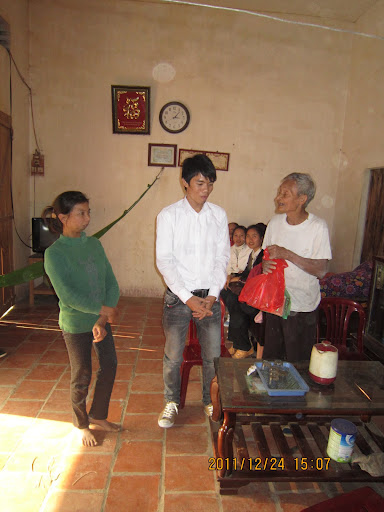(phó nhóm Thái Hà trao quà và những lời động viên gia đình)