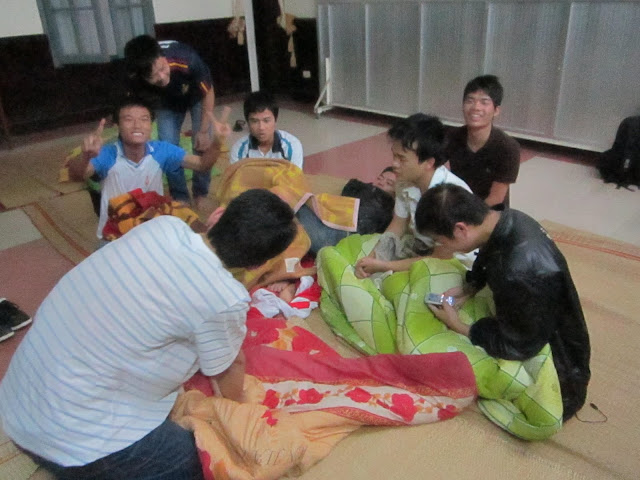 10h đêm là giờ tắt điện của nhà Dòng, chúng tôi chìm trong một bóng tối tĩnh lặng, một bóng tối của sự bình an vì trong lòng mỗi người đều hiểu rằng Chúa và Mẹ luôn ở bên đồng hành cùng mỗi người trong mọi nơi, mọi lúc. 4h sáng ngày 10/04 chúng tôi được báo thức bởi tiếng chuông của nhà Nguyện vang lên báo hiệu đã đến giờ Kinh sáng và Thánh Lễ, sau Thánh Lễ do Đức Đan Viện Phụ (mới từ miền nam ra thăm) đồng tế cùng các Cha trong nhà Dòng Sito Châu Sơn chúng tôi lại được tham dự tiếp một giờ Kinh trưa và được dùng bữa sáng cùng Cha Bề Trên, tuy bữa sáng chỉ là bánh mỳ chấm sữa và pate nhưng Cha con ăn rất vui vẻ và ngon miệng. Có một nghịch lý là về đây mỗi ACE đều tăng từ một đến hai cân (có người còn cân được 80kg, hii thật là hồng ân Chúa bao la^^), có lẽ là thức ăn của Đan Viện ngon quá hay mỗi ACE đều cảm thấy bình an trong tình yêu Chúa và Mẹ Maria. Sau khi dùng bữa xong Cha Bề Trên đã dẫn ACE đi tham quan một vòng Đan Viện và giới thiệu về lịch sử xây dựng lên ngôi Thánh Đường với bao công sức và tâm huyết của các Cha trong nhà Dòng. Sau khi tham quan xong các thành viên đã tham gia vệ sinh toàn bộ phòng ở và khuân viên của nhà khách.