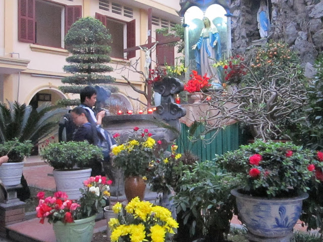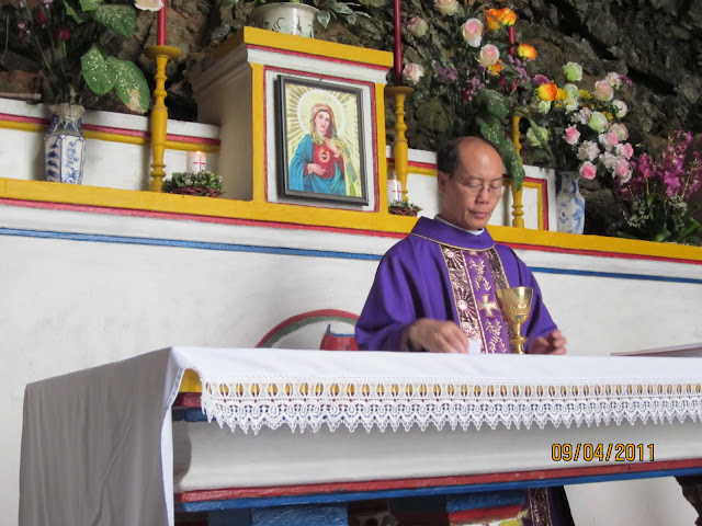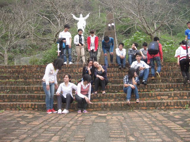 2h chiều, Gia Đình Thái Hà đã được Đức Tổng Giuse dâng Thánh Lễ trên núi Đức Mẹ phía sau Đan Viện, một Thánh Lễ rất sốt sắng và tâm tình. Sau Thánh Lễ, Ngài đã giảng tĩnh tâm cho chúng tôi tại đây rồi cùng các thành viên chụp hình lưu niệm trên núi Đức Mẹ và dẫn chúng tôi về Đan Viện tham dự giờ kinh chiều. Các ACE trong Gia đình Thái Hà thật là tuyệt vời khi cùng vừa mới tham dự Thánh Lễ trên núi xuống lại tham dự ngay một Thánh Lễ nữa do Cha Phó Bề Trên Simon dâng tại Đan Viện (Ôi mình hâm mộ các ACE nhà mình quá, hii thật là Thánh thiện^^)