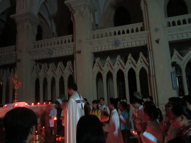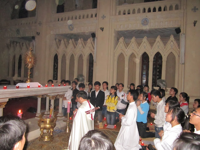 Sau giờ cơm tối hôm đó, chúng tôi lại được tham dự một giờ Kinh tối, hai giờ Kinh đêm và được Đức Tổng cùng các Cha trong nhà Dòng ngồi tòa để ACE vào xưng tội. Đến 8h30, chúng tôi bước vào giờ Cầu nguyện Taize trước Thánh Thể Chúa với biết bao nhiêu tâm tình, bao nhiêu lời tâm sự mà mỗi ACE muốn gửi lên Chúa Giesu Thánh Thể, chỉ với 1,5h Cầu nguyện ít ỏi đã để trong lòng tôi, trong lòng mỗi ACE một niềm vui, một sự bình an một tình huynh đệ gắn kết và có lẽ từ nay mỗi chúng tôi sẽ hiểu nhau thêm, sẽ gắn bó mật thiết với nhau hơn và Gia Đình Thái Hà sẽ ngày càng Hiệp Nhất – Yêu Thương – Phục Vụ.