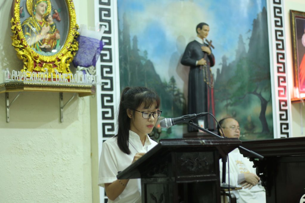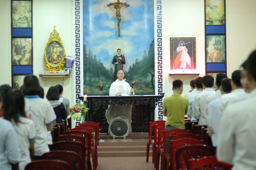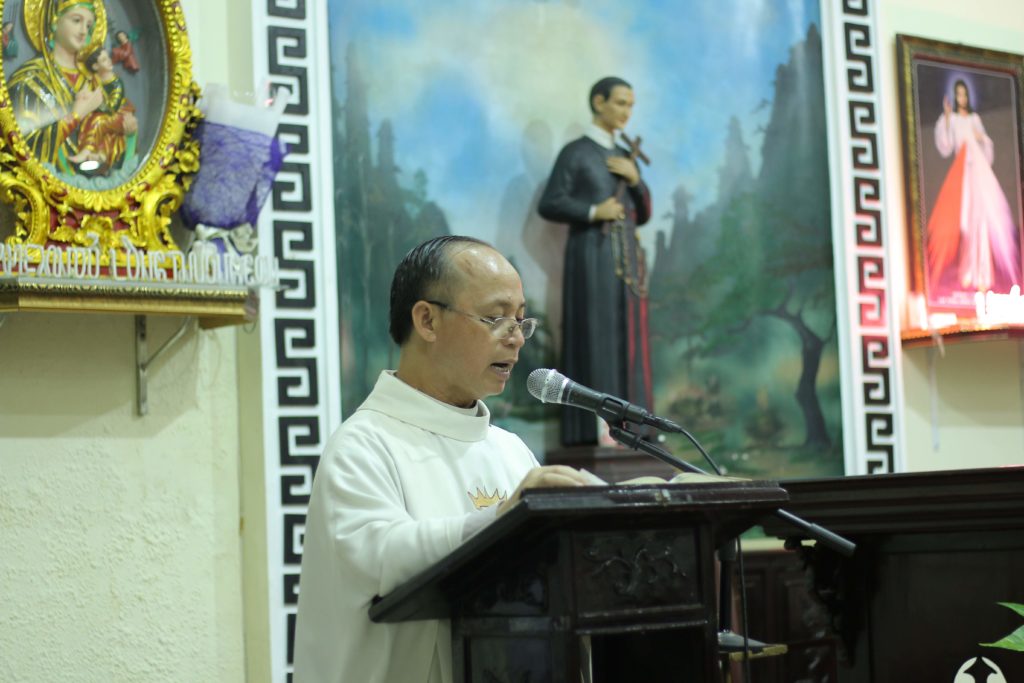Mở đầu Thánh lễ, Cha cảm tạ Thiên Chúa vì đã ban cho chúng ta Ban Điều Hành mới- những người được Thiên Chúa tuyển chọn. Trong bài giảng, Cha luôn nhấn mạnh vai trò của người thủ lãnh trong sự phát triển của Cộng đoàn chúng ta. Cha đã đưa ra 2 điều mà người trưởng nhóm luôn phải ý thức. Điều thứ nhất là phải luôn ý thức mình là thợ gặt trên cánh đồng truyền giáo là Cộng đoàn SVCG Bùi Chu chúng ta. Thứ hai, người thủ lãnh phải luôn ý thức mình là đầy tớ phục vụ anh em. Thiên Chúa đã tin tưởng trao phó cho an hem cầm Hồng ân của Thiên Chúa để phân phát cho dân Chúa, vì vậy anh em phải ý thức điều đó để phân phát cho đúng thời đúng điểm.