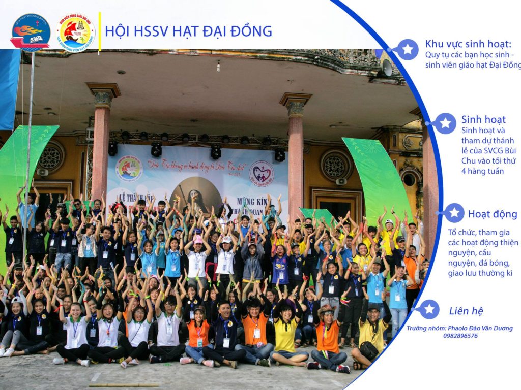 Hội HSSV Hạt Đại Đồng – nơi bạn sẽ được học hỏi về lời Chúa, Giáo lý, tham gia các chương trình thiện nguyện gắn kết hơi ấm, tình thương, được cùng nhau cầu nguyện, cùng nhau học hỏi và chia sẻ,… không những thế các bạn còn được rèn luyện thêm cho bản thân mình về sự tự tin, kĩ năng giao tiếp.