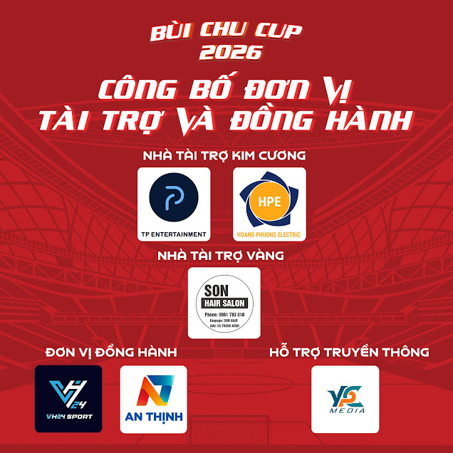 CÔNG BỐ ĐƠN VỊ TÀI TRỢ & ĐỒNG HÀNH CÙNG HỘI THAO BÙI CHU CUP 2026