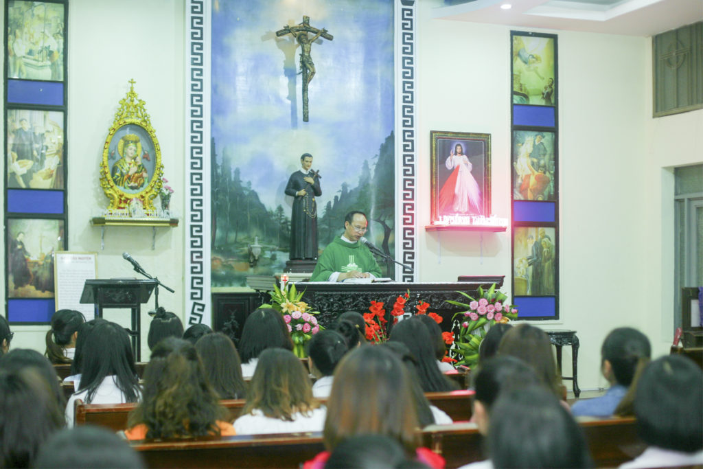 Sinh viên chúng ta đã thật sự khao khát được nhận biết Chúa và hồng ân của Ngài? Đã vâng nghe theo lời Chúa luôn biết tìm đến Chúa, khao khát Chúa và trông cậy vào Chúa trong mọi sự để không bị cuốn theo những vòng xoay của xã hội hiện đại, phó thác nơi Ngài những lo toan, khó khăn vất vả và cả những thành công. Chính chúng ta thấy rằng mình không bị mù về con mắt nhưng còn tâm hồn thì sao? Tâm hồn mỗi người đã thật sự SÁNG hay chưa? Đồng thời cha cũng hỏi nhỏ các bạn sinh viên rằng: “Các con có tin là có ma quỷ không”? Sự băn khoăn, ngỡ ngàng và ngờ vực là tâm trạng của mọi người trước câu hỏi của Cha. Vậy còn các bạn, các bạn nghĩ thế nào về câu hỏi này? Ma quỷ chúng ta tin chứ? Vì chính trong kinh thánh Chúa đã nhắc đến nó, nó đã nhiều lần cám dỗ Thiên Chúa, cám đỗ con người chúng ta. Sinh viên chúng ta nhiều lúc vẫn hăng say đi lễ, nhưng trong lòng liệu có thực sự tin và phó thác cậy trông nơi Chúa? Mọi người chúng ta đễ dàng bị cám dỗ, bị ma quỷ che mờ mắt mà không nhận biết được Thiên Chúa – nguồn yêu thương vô bờ.