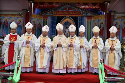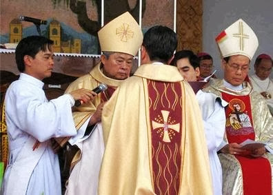 | Đức cha Giuse truyền chức linh mục cho các thầy phó tế tại Phú Nhai |