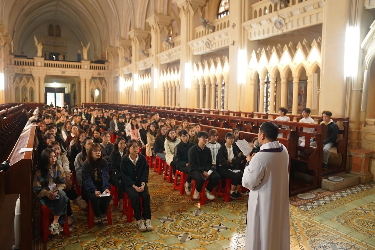 Sau những giây phút thảo luận, chia sẻ sôi nổi về các chủ đề, các bạn sinh viên cùng lắng đọng bằng việc ăn năn sám hối và đến với Chúa trong Bí tích Hòa Giải để làm đẹp ngôi thánh đường trong chính tâm hồn.