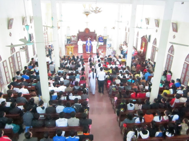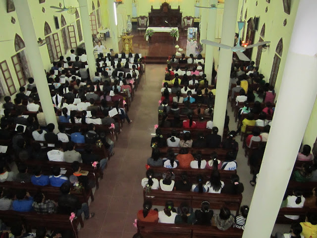 Thánh Lễ hôm nay do cha xứ Giu-se Nguyễn Văn Hy và cha Lu-ca Phạm Quang Huy (Cha giáo của ĐCV Thánh Giu-se Hà Nội, cở sở 2) chủ sự cùng với sự tham dự trang nghiêm, sốt sắng của hơn 600 bạn sinh viên đến từ các nhóm trên địa bàn miền Cổ Nhuế. Có lẽ, ai trong mỗi sinh viên đều hiểu và biết thêm về vị Thánh Quan thầy: một con người có tinh thần truyền giáo cao độ, có lòng say mê Đức Ki-tô, say mê các Linh hồn, say mê học tập và say mê làm việc.