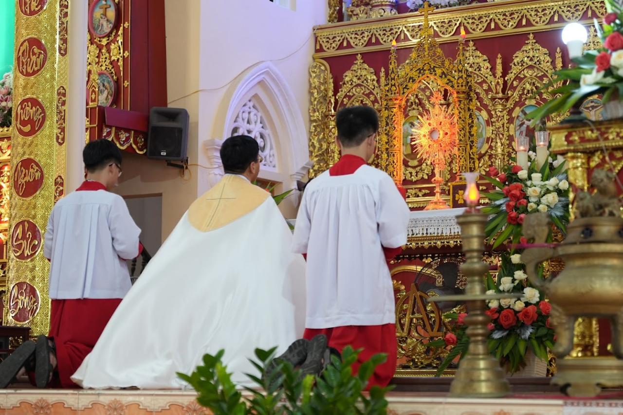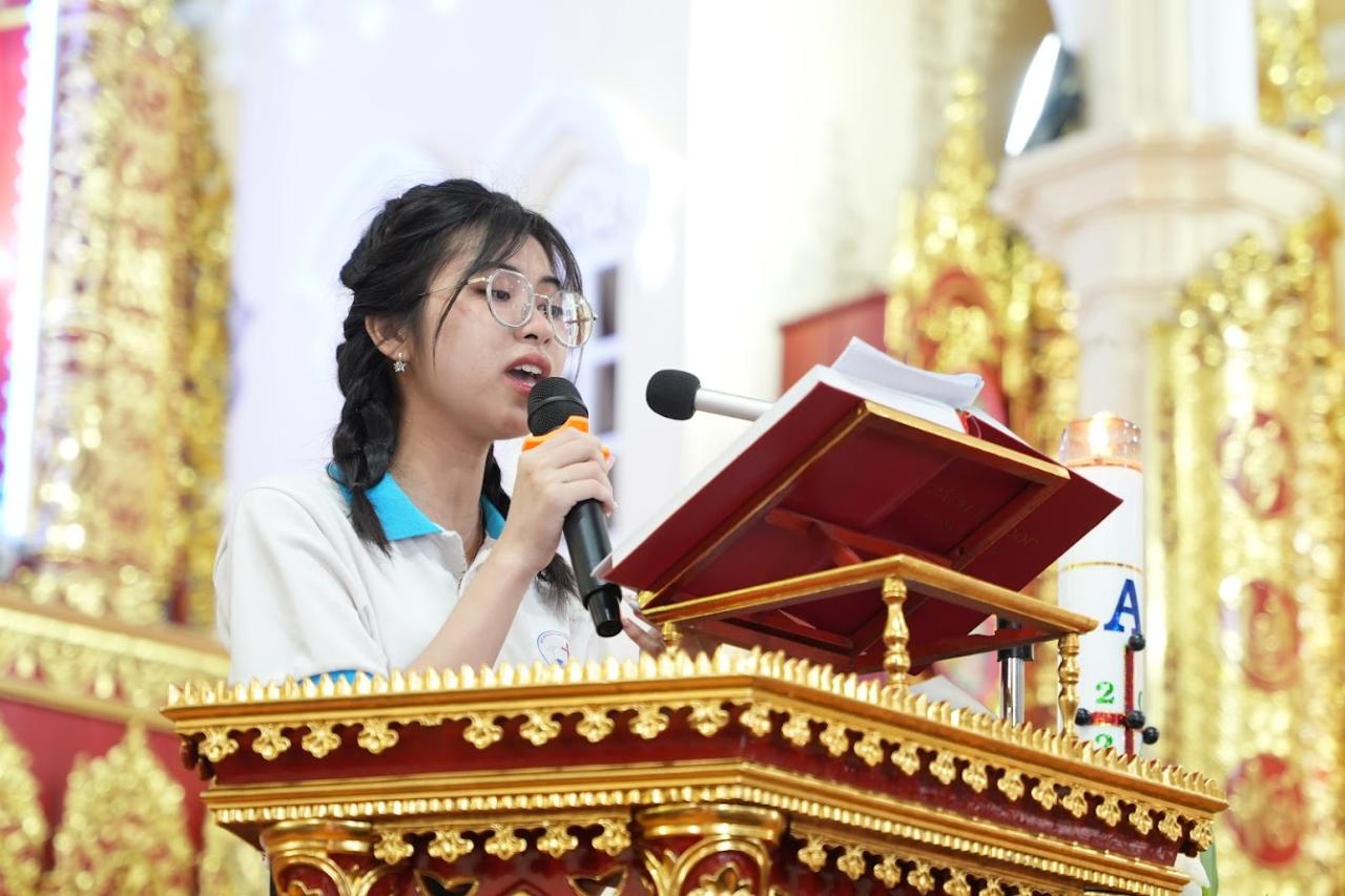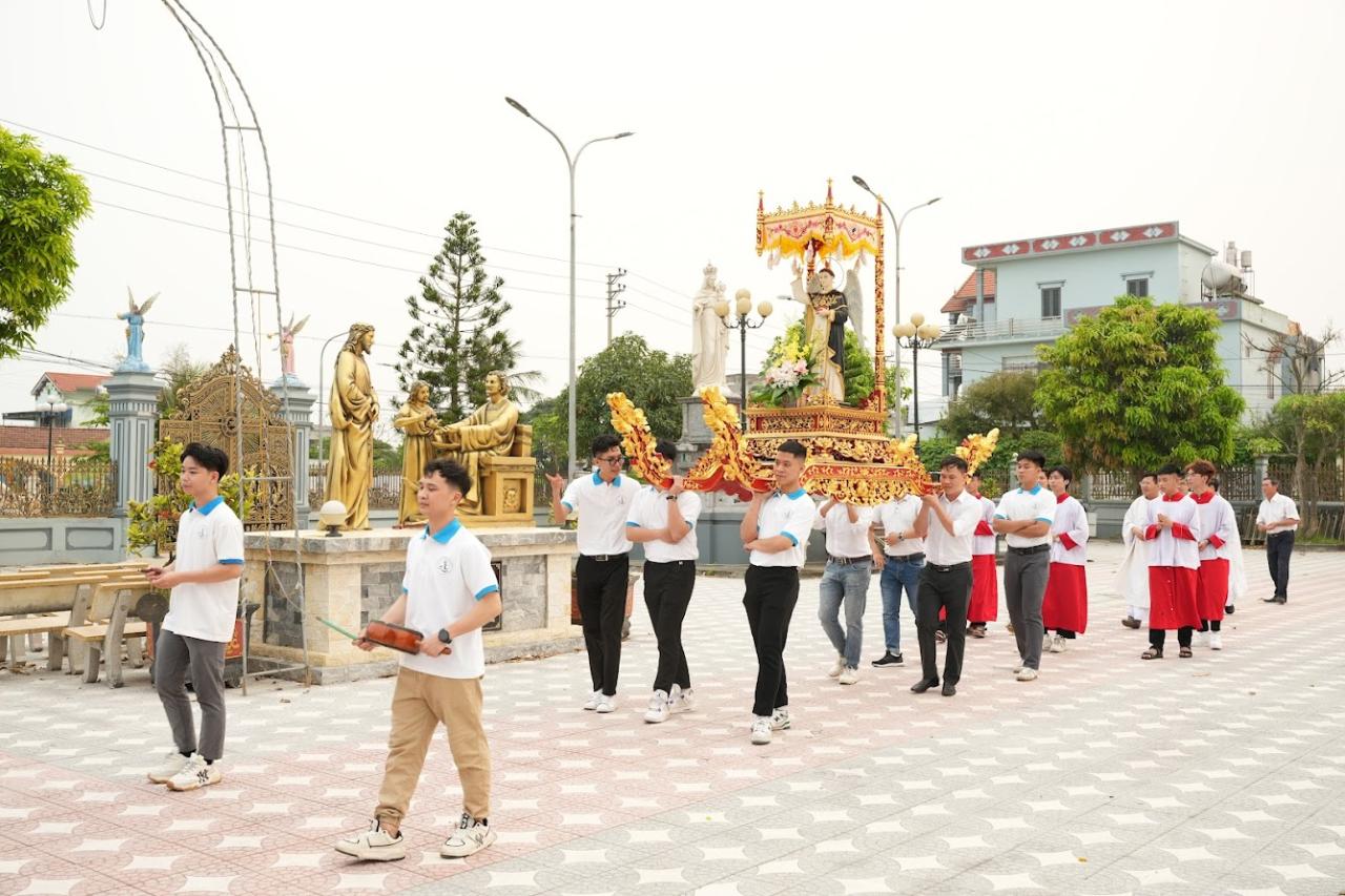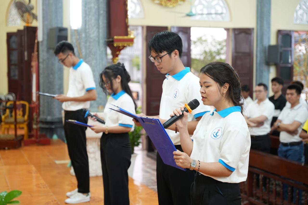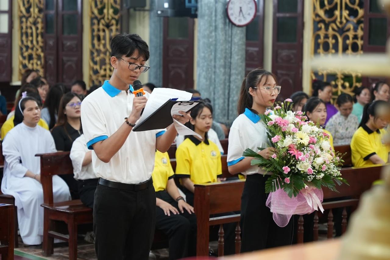 Với sự quan phòng của Chúa cùng với tình yêu thương của Thánh Vinh Sơn quan thầy, câu chủ đề “Xin cho họ nên một” do cha linh hướng Phan Trung Lăng của nhóm đưa ra, thánh lễ ngày hôm ấy đã tạo ra một không gian linh thiêng để tất cả mọi người cùng nhau cầu nguyện và cùng nhau chia sẻ lòng yêu thương và hy vọng cho nhau. Thánh lễ được cử hành một cách trang nghiêm, sốt sắng bởi Cha Giuse Bùi Văn Tuyền, Cha Giuse Vũ Tứ Quyết và Cha Giuse Phan Trung Lăng. Trong suốt thánh lễ, các bạn trẻ được lắng nghe phần chia sẻ của Cha Giuse Vũ Tứ Quyết về bài Tin Mừng Chúa Giê-su Ki-tô theo Thánh Mát-thêu cũng như chủ đề “Xin cho họ nên một”. Những lời chia sẻ, những câu hỏi mà Cha đưa ra cũng phần nào khiến chúng ta phải suy nghĩ nhiều hơn về cuộc sống sinh viên của mình. Có lẽ đây sẽ là một trong những thánh lễ đáng nhớ nhất đối với các bạn SVCG Bùi Chu – Làng Tám. Đáng nhớ không chỉ vì những lời chia sẻ của Cha mà còn nhờ cuộc rước đầy lòng sốt sắng, những giai điệu du dương mà các bạn ngày ngày tập luyện, hay đơn giản là những thứ mà các bạn sinh viên ấy tự tay chuẩn bị cho thánh lễ. Tất cả đã tạo nên một thánh lễ trang nghiêm, để lại dấu ấn trong mỗi người khi tham dự thánh lễ ấy
