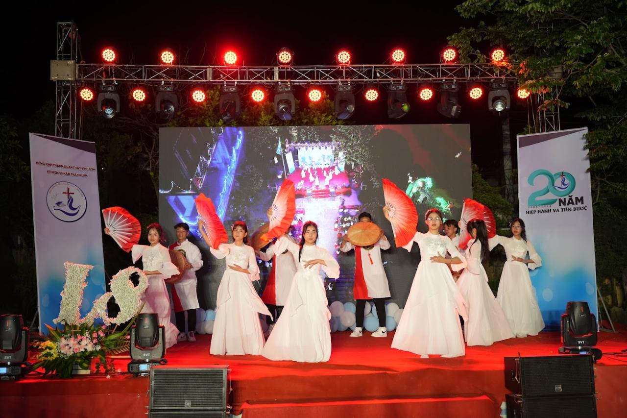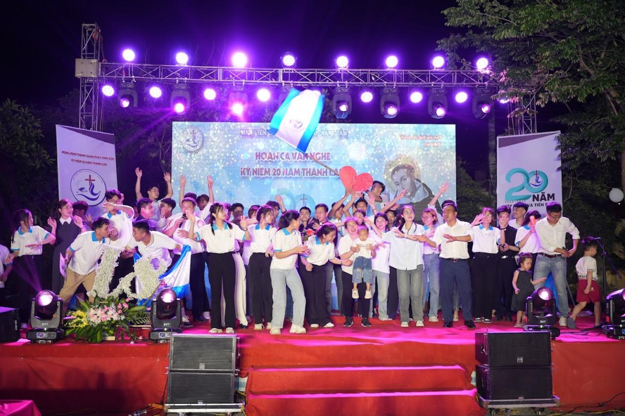 Và điểm nhấn của buổi lễ sinh nhật 20 năm này không gì khác đó chính là đêm hoan ca văn nghệ. Buổi hoan ca văn nghệ năm nay không chỉ đơn giản là các tiết mục của SVCG Bùi Chu – Làng Tám mà còn có sự góp mặt của các nhóm sinh viên, giới trẻ, giáo lý viên đến từ giáo xứ chủ nhà Trung Châu, giáo xứ Giáp Nam, Triệu Thông và nhóm nhạc Huyền Ca. Mỗi tiết mục đều mang đến một màu sắc, không khí riêng và luôn tạo được ấn tượng đối với khán giả. Nhưng thứ khiến mọi người nhớ nhất, đặc biệt là với các thành viên Làng Tám có lẽ là hoạt cảnh lịch sử SVCG Bùi Chu – Làng Tám. Tuy rằng hoạt cảnh ấy chỉ diễn ra trong vỏn vẹn 20 phút nhưng đã khiến cho biết bao trái tim như được sống lại với những câu chuyện đầy ắp kỉ niệm đáng nhớ kể từ khi nhóm sinh viên ấy ra đời. Cho dù bạn là ai, bạn đến từ đâu, bạn bao nhiêu tuổi nhưng khi đắm chìm vào hoạt cảnh ấy, nhớ lại những niềm vui, những khó khăn, thử thách thì chúng ta đều sẽ trở nên một đúng như câu chủ đề năm nay. Đây cũng chính là điều mà Ban Đại Diện luôn hy vọng khi tổ chức chương trình.