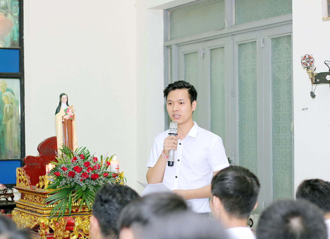 Trong bầu khí linh thiêng và tĩnh lặng, bài chia sẻ của cha Gioan thôi thúc chúng con suy ngẫm về tấm gương Teresa, về hành trình trải dài hồng ân 13 năm đã đi qua với bao hoạt động và chương trình ý nghĩa của bao thế hệ SVCG Bùi Chu-Thái Hà. Nhìn lại để thấy sự hiện diện quan phòng của Thiên Chúa Tình yêu  và sự bảo trợ cầu bầu của Thánh nhân quan thầy qua mỗi bước đi, mỗi chặng đường của SVCG Bùi Chu – Thái Hà. Sau cùng, Cha Gioan hoan nghênh sức trẻ, lòng nhiệt huyết, sự hăng say cống hiến của bao thế hệ: cựu – đương – tân sinh viên của nhóm và chúc mừng nhóm SVCG Bùi Chu – Thái Hà đã nhận Thánh nữ Tình yêu làm bổn mạng  và có một ngày lễ truyền thống thực sự trang trọng, công phu ngay từ những bước chuẩn bị ban đầu.