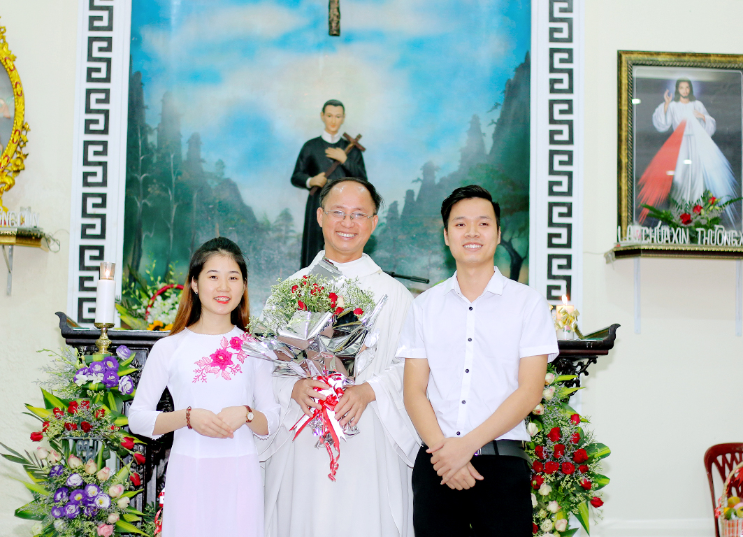 Thánh lễ khép lại, đại diện nhóm SVCG bùi Chu – Thái Hà – anh Giuse Phạm Xuân Thắng thay mặt nhóm  gửi lời tri ân và cảm ơn đến quý Cha linh hướng, quý dì, quý anh chị cựu, anh chị em sinh viên  và cộng đoàn đã đến hiệp thông Thánh lễ, đồng hành và cầu nguyện để nhóm phát triển mạnh mẽ như ngày hôm nay. Tiếp lời, chị Maria Nguyễn Thị Hà dâng lên cha Gioan bó hoa tươi thắm  trong  tiếng vỗ tay chúc mừng của cả cộng đoàn. Nguyện xin Chúa Cứu Thế che chở, chúc phúc cho Ngài trong sứ mạng mục vụ, chăn dắt đoàn chiên của Chúa cách riêng nhóm SVCG nhỏ bé của chúng con đây.