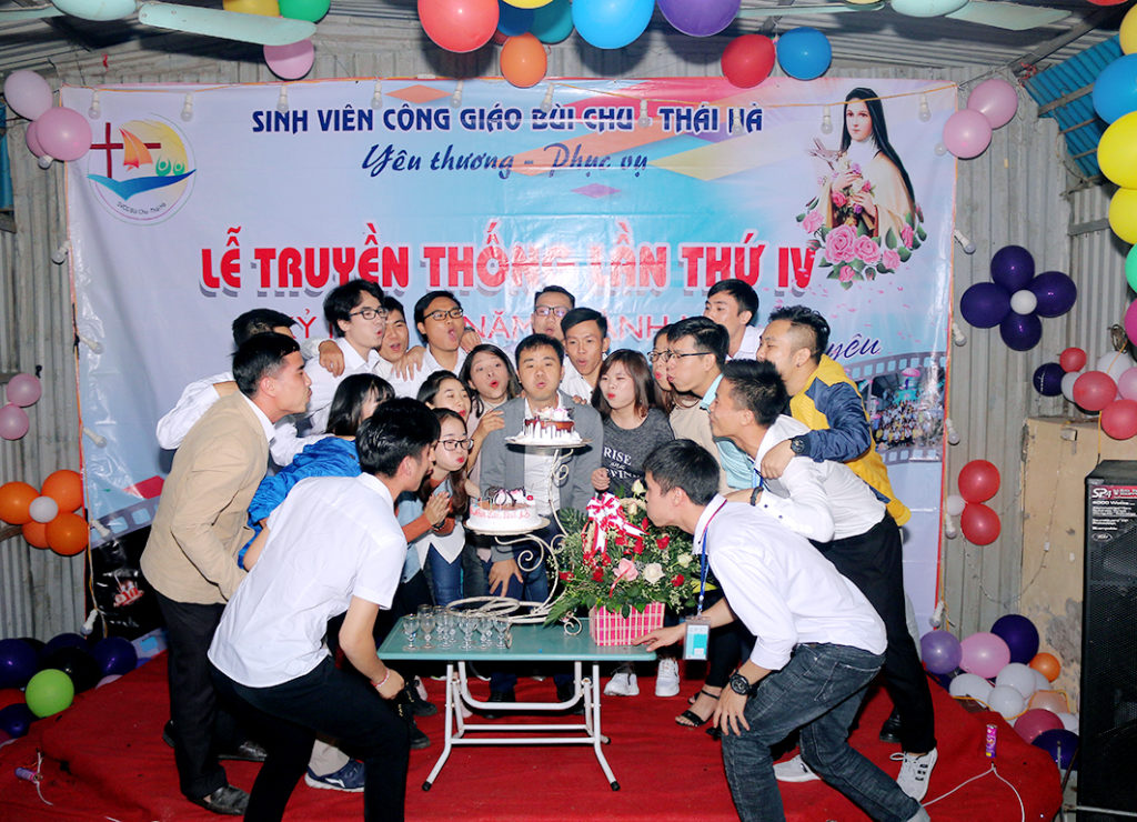 Một phần đặc biệt được mong đợi nhất chương trình đó là phần cắt bánh sinh nhật: chúc mừng LTT lần thứ IV và chặng đường  13 năm thành lập của nhóm. Tất cả anh chị cựu các khóa và ban điều hành cùng nhau thổi nến và chung tay cắt bánh chúc mừng trong tiếng vỗ tay nồng nhiệt của tất cả anh chị em hiện diện tại khán phòng. Những món quà tri ân ý nghĩa trao tặng cho quý anh chị cựu, các bạn tân thành viên của nhóm. Những cái ôm, cái bắt tay của anh chị em đại diện các nhóm, hạt trong cộng đoàn SVCG Bùi Chu gửi trao nhóm như một sự tri ân tốt đẹp, mừng chúc cho sự hiện diện ghi dấu 13 năm giữa lòng cộng đoàn của nhóm Bùi Chu – Thái Hà.