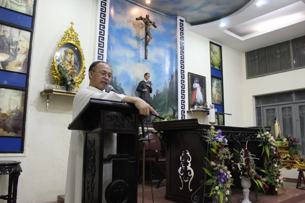Mở đầu Thánh lễ, cha linh hướng Gioan mời gọi tất cả anh chị em noi gương Thánh quan thầy Teresa – ” bông hoa nhỏ của Chúa” – một con người với tình yêu cao vời, một lòng thành kính hy sinh hiến dâng cả cuộc đời cho Chúa.