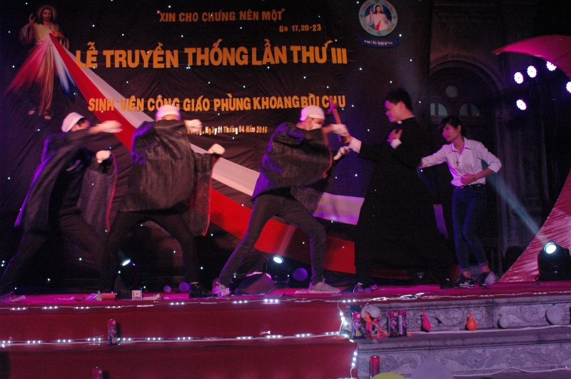 Sau thánh lễ Chương trình văn nghệ diễn ra rất náo nhiệt và vui tươi. Với sự góp mặt của 2 MC Minh Linh – Nhật Thắm, cùng sự tham gia của các nhóm Cầu Giấy, các bạn trẻ Học viện Quản lý Giáo dục, các bạn giới trẻ giáo xứ Đông Lao, tiết mục nhóm chủ nhà, các tiết mục Solo, song ca và tiết mục hợp xướng của các bạn trẻ Giáo xứ Phùng khoang rất hấp dẫn và đầy chuyên nghiệp.