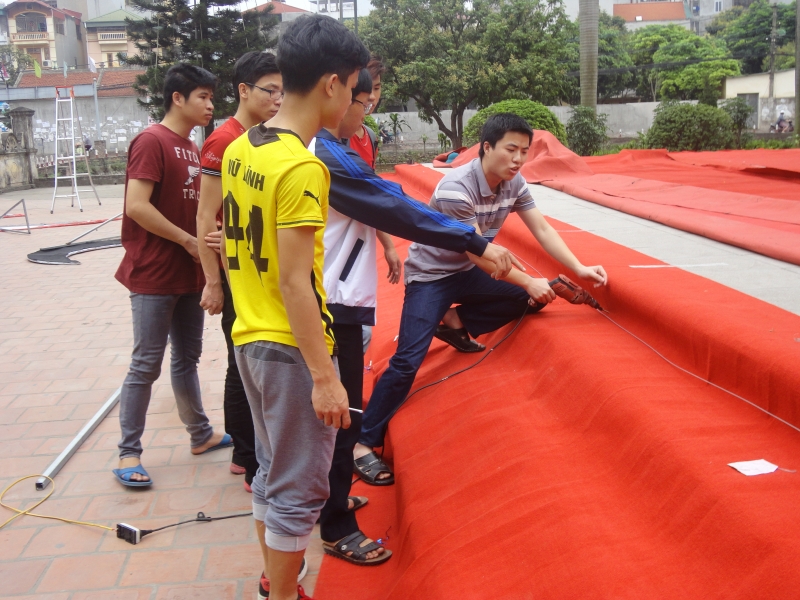 Phùng Khoang lúc 12h trưa, công tác chuẩn bị sân khấu vẫn tiếp tục