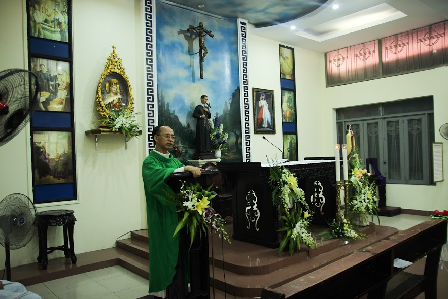 Đúng 8h30 Thánh lễ được cử hành sốt sắng dưới sự chủ tế của Cha Gioan Lưu Ngọc Quỳnh. Trong bài giảng, Cha nói “vườn nho chính là một ơn huệ, thậm chí sứ mạng canh tác và gìn giữ (x. St 2) cũng là một ơn huệ; ơn huệ vườn nho và sứ mạng canh giữ vườn nho nhắc nhớ sự hiện diện của “Đấng ban ơn” Ngài muốn nhắc nhớ tới thành viên trong gia đình Bùi Chu – Thái Hà luôn sống tốt đẹp, trọn đời Kitô hữu trẻ, hiệp thông, đoàn kết phát triển nhóm vững mạnh, đồng thời noi gương Thánh Quan Thầy để trở nên những điểm sáng giữa đời sống xã hội này.
