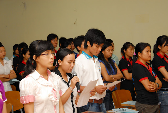 Em đang phát biểu cảm nghĩ của mình khi được mọi người tín nhiệm và chọn vào vị trí phó nhóm, e hứa sẽ làm tốt công việc của mình. ACE chúng hay hãy cùng nhau cầu nguyện cho em, và cho toàn thể ACE BĐH nhé.