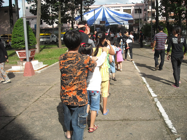 Có khoảng 250 em tham gia chương trình – ban điều hành đã chia ra 11 hàng và mỗi hàng gồm 2 bạn sinh viên quản lý các em.