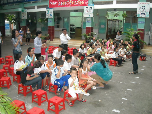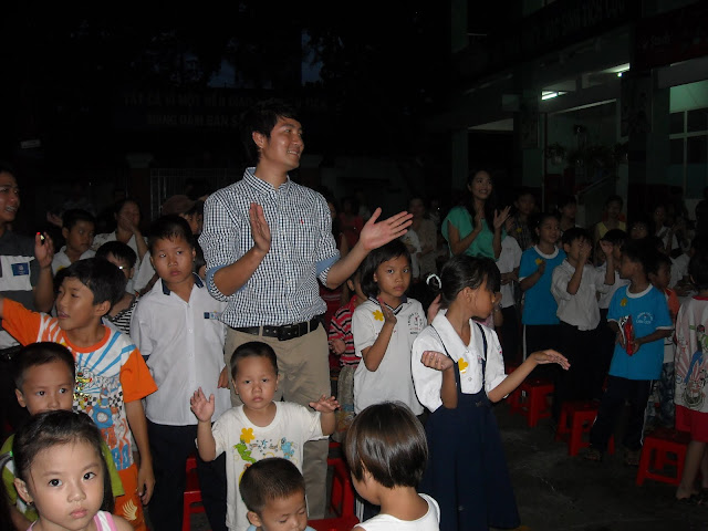 Thế rồi chiều ngày hôm đó, đúng 17h00 chúng tôi có mặt tại nơi tổ chức cho các em, vì phải đợi cho các em ở trường tan học, đợi tới tận 17h30 thì chương trình mới được bắt đầu, cùng các em chơi một số trò chơi nhẹ nhàng, cùng hát và cùng múa.
