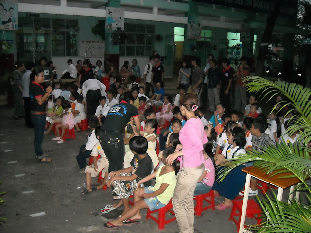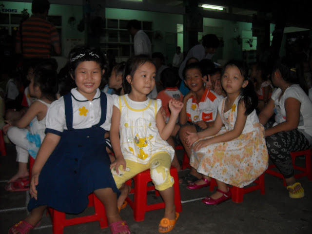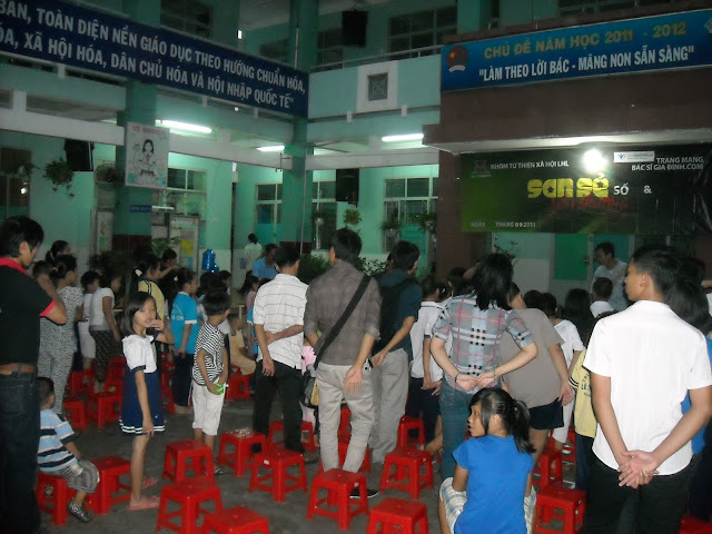 Vì điều kiện thời tiết không được tốt, nên các em phải chuyển vào trong phòng nhỏ, tuy hơi trật trội, nhưng tinh thần mà mọi người dành cho các em vẫn không thay đổi, vẫn vui cười, vẫn dành hết những tình cảm thiết thực nhất dành cho các em