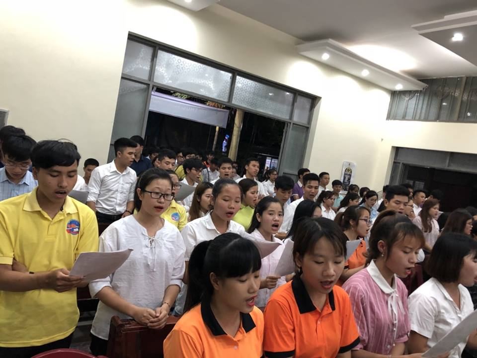 Cũng trong thánh lễ đặc biệt này, CĐ có dịp gặp mặt, chúc mừng và tri ân anh chị em sinh viên ra trường trong năm nay.Mỗi Thánh lễ là một ngày họp mặt của sinh viên Bùi Chu tại Hà Nội để kết nối, gắn bó anh chị em trong nhóm và khích lệ nhau sống, chia sẻ Đức tin. Lần họp mặt này mang dấu ấn đặc biệt với mỗi sinh viên, nhất là những anh chị em chia tay với ghế nhà trường để bước vào đời.Trước khi bước vào thánh lễ là giờ tập hát, đông đảo anh chị em trong nhóm SVCG Bùi Chu – Thái Hà có mặt, góp thêm những lời ca tiếng hát vào trong ngày lễ Tạ ơn này.