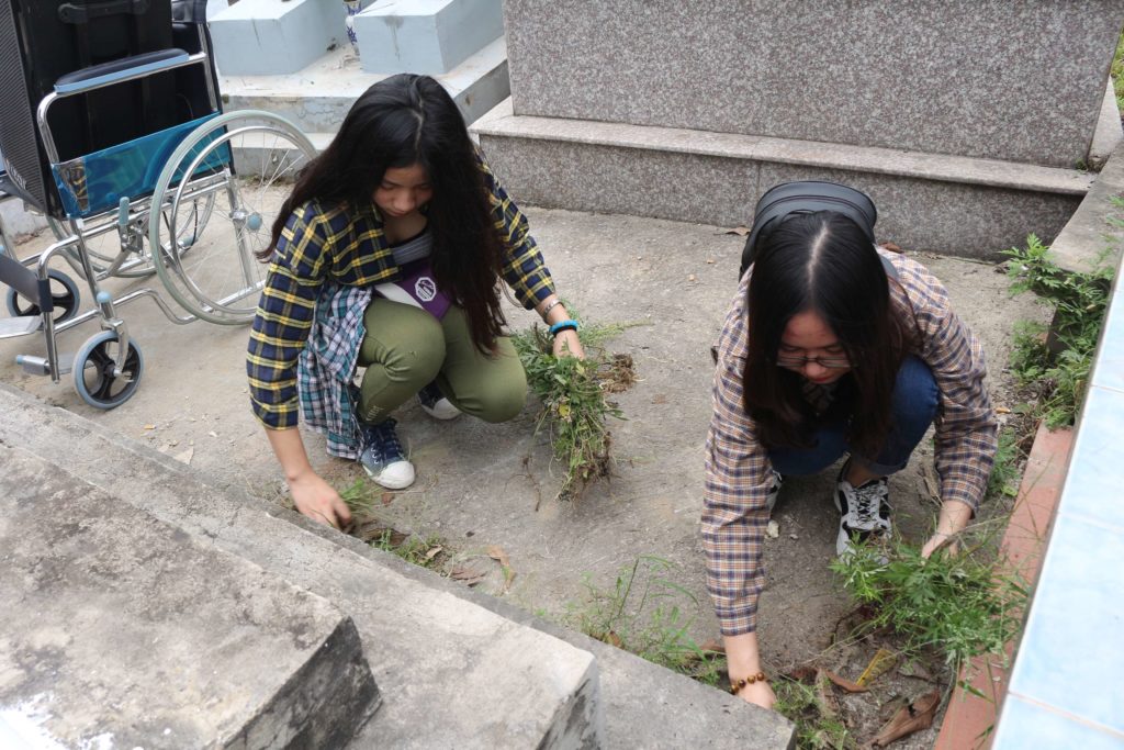 Sau đó, mọi người cùng di chuyển ra nghĩa trang để tiến hành dọn dẹp và xây sửa lại phần mộ cho các em thai nhi nơi đây. Ngôi mộ thai nhi La Phù được xây dựng vào tháng 4/2010 đến nay đã là nơi yên nghỉ của hơn 10.000 em nhỏ còn chưa kịp chào đời đã bị tước đi mạng sống. Sau khi quét dọn, nhặt cỏ khuôn viên nghĩa trang, các thành viên trong nhóm tiến hành chuyển vật liệu xây dựng và tiến hành xây thêm tầng nữa cho ngôi mộ do các ô chôn thai nhi đã gần hết. Sau hơn 4 giờ đồng hồ, công tác xây sửa cũng đã hoàn tất, các thành viên cùng nhau dâng lên Chúa những câu kinh, những lời nguyện cho các linh hồn thai nhi xấu số, cùng thắp cho các em những nén hương, những bông hoa.