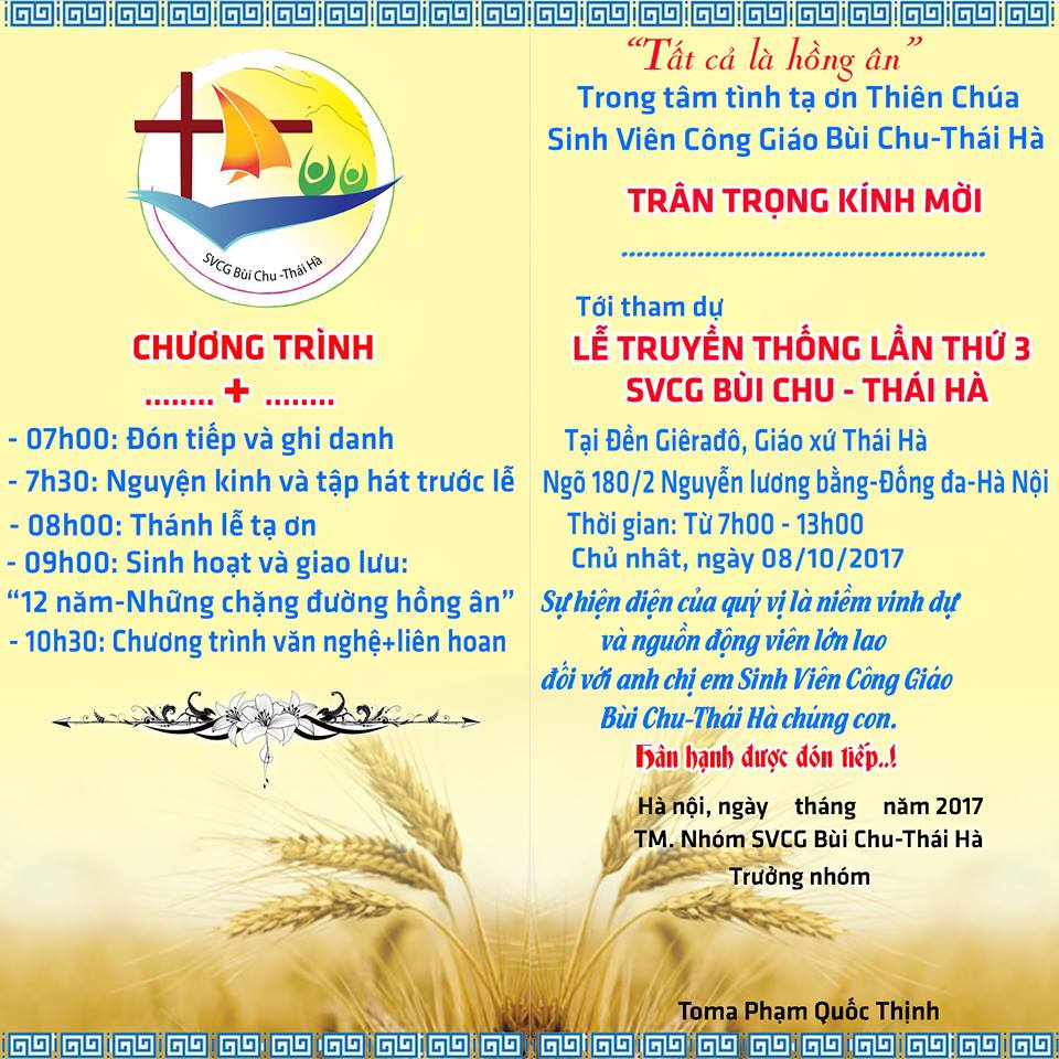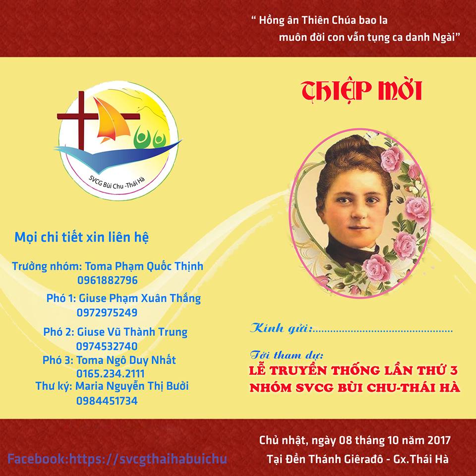 Thư Mời LỄ TRUYỀN THỐNG LẦN THỨ III – NĂM 2017 Của Nhóm SVCG Bùi Chu – Thái Hà