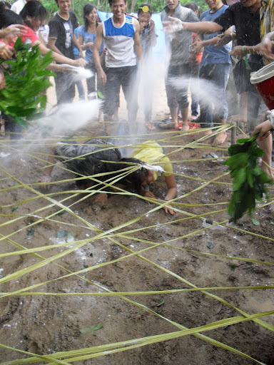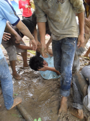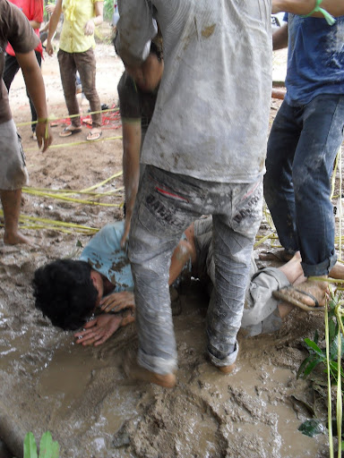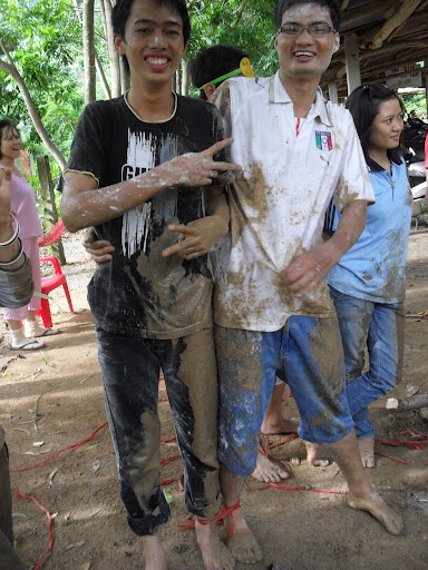 đây là trò gì nhỉ, bột, nước, đất… trời không mưa mà sao ai cũng đúng như “quỷ” thế này.