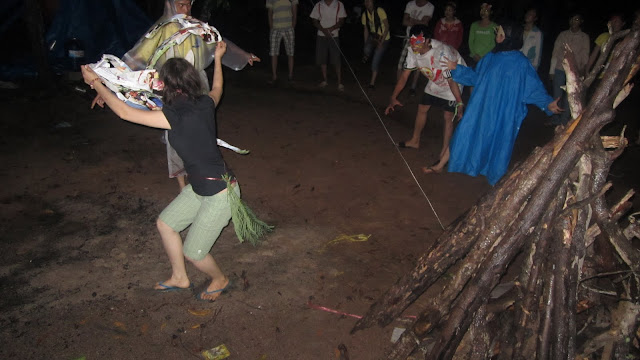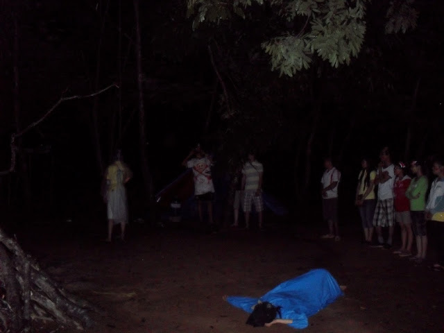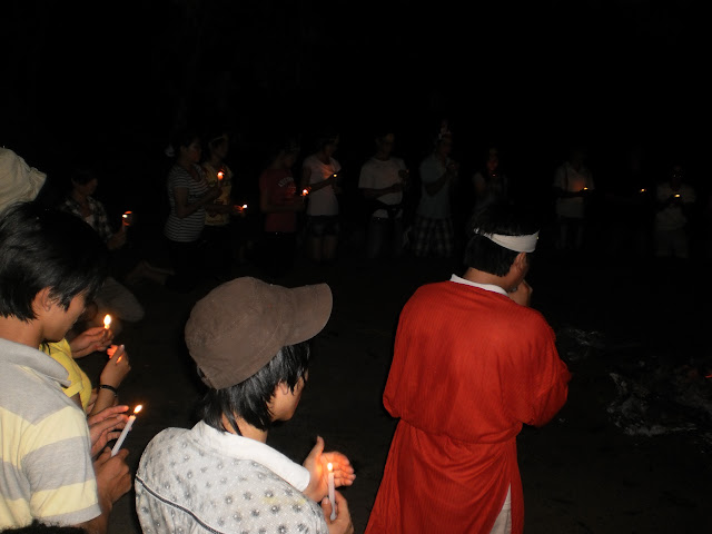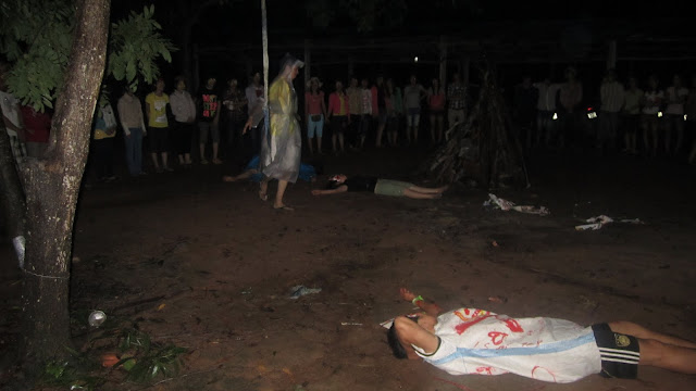 Và bây giờ là nghi thức trước khi lửa trại, “Ánh sáng và bóng đêm”, khi bóng đêm buông xuống, lũ quỷ dữ, ma quái bắt đầu hoành hành, mang những dịch bệnh và bắt đi những linh hồn yếu đuối, để được trở về cùng Chúa, chúng ta phải trải qua bao nhiêu gian khổ, biết bao nhiêu khó khắn. Liệu chúng ta có vượt qua được hay không, điều đó còn phụ thuộc vào chính những người Ki-tô hữu chúng ta. Chúng ta hãy cố gắng lên, Chua luôn ở bên chúng ta, che trở chúng ta, và luôn hướng dẫn chúng ta đi trên con đường gian khổ này, đề khi về đời sau, chúng ta được hưởng vinh nhan Chúa muôn đời trên nước trời, nước của Thiên Chúa làm Vua.