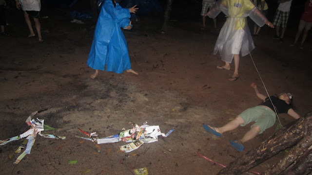 Bây giờ trời cũng bắt đầu đổ mưa, cũng là lúc chúng ta đi tắm để chuẩn bị cho cuộc thi nấu ăn giữa các đội.