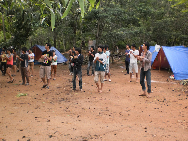 các bạn đã dựng xong, BTC bắt đầu đi chám điểm trại, tiện thể làm mấy bức hình để làm kỉ niệm.hihihihihihi