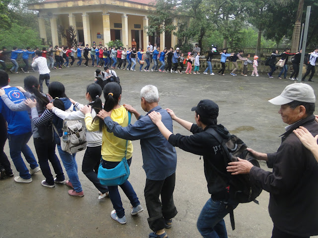 Những bài hát, những tiếng cười, những câu hỏi ngô ngê làm quen được cất lên theo những chuyến xe như giúp cho những người đã quen, đã biết, và những người hoàn toàn xa lạ như gần nhau hơn, hiểu nhau hơn và càng làm cho nhiệt huyết tuổi trẻ cao hơn khi cùng đồng lòng hướng về Gia đình Phong Ba Sao_Nơi rất cần yêu thương.7h30, đặt những bước chân đầu tiên xuống khu điều trị Phong Ba Sao.Cầm những túi quà tuy nhỏ nhưng tấm chân thành thì lớn, các bạn sinh viên chia nhỏ ra đi thăm và chia sẻ với các cụ. Những bài cử điệu được cất lên, những vũ khúc sôi động như xóa đi cái vẻ hoang vu của nơi này. Thay vào đó là nụ cười hạnh phúc, những cái vỗ tay vui vẻ.Tất cả như hòa vào không khí ấm áp đầy tình người này.Nghe những lời nói ngẹn ngào cảm động, được nắm những bàn tay gầy của các cụ sao mà ấm áp thế? Nhìn những nụ cười của bọn trẻ nhỏ sao mà lấp lánh hạnh phúc thế? Những nụ cười mãn nguyện trên gương mặt đầy những vết nhăn của các cụ sao mà thấy lòng bình yên lạ.