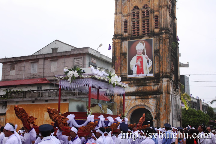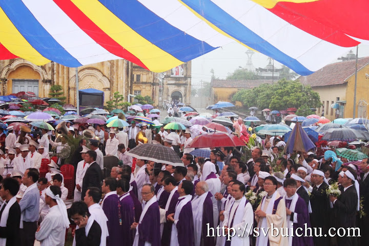 Đối với giáo phận Bùi Chu thì quả thật hôm nay một ngày không gì buồn hơn, ngày đại lễ an táng Đức cha Giuse giáo phận cả nghĩa đen và nghĩa bóng. Con cái Bùi Chu ở khắp nơi, trong nước cũng như ngoài nước đang hướng quảng trường nhà thờ chính tòa để cùng hiệp thông với giáo phận mẹ cầu nguyện cho Đức cha cố Giuse. Trước đó lúc 04h30 sáng Đức cha Tôma đã dâng thánh lễ cầu nguyện cho Ngài và kế đó là di quan Đức Cha ra quảng trường nhà thờ Chính tòa. Lạ lùng thay khi ngài vừa ra tới nơi thì trời bắt đầu đổ mưa. Dường như những cơn mưa bớt chợt khiến lòng buồn hơn, tâm hồn tê tái hơn và cũng thương nhớ Đức cha hơn.