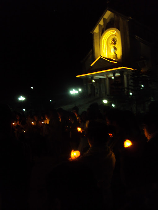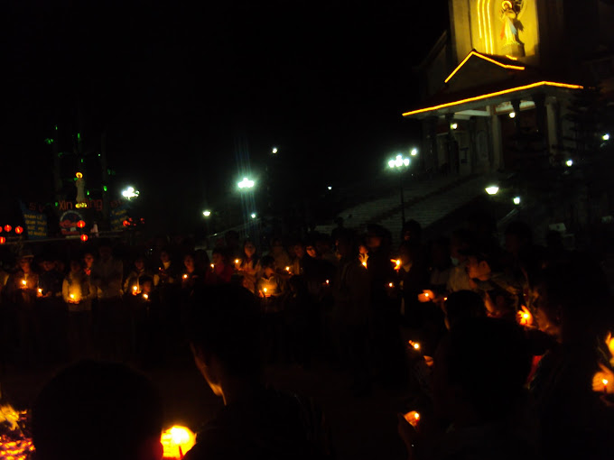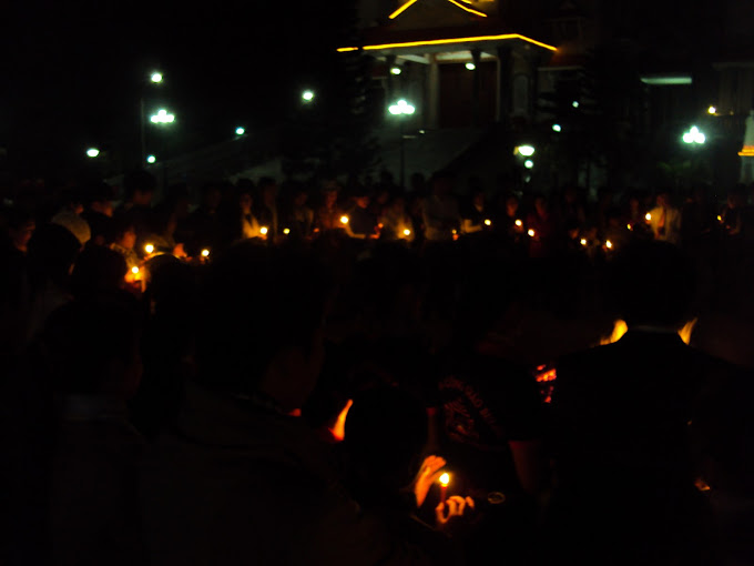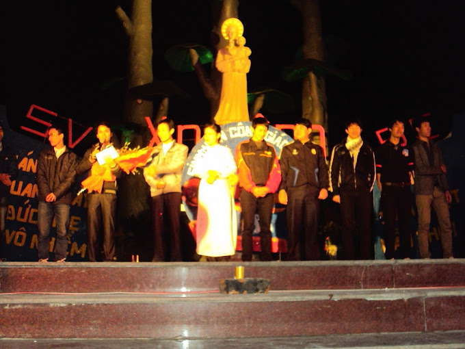 Buổi thắp nến cầu nguyện diễn ra vào 22h30, thời gian khá muộn. Các bạn sinh viên đã cùng nhau dâng lên Chúa và Mẹ những khó khăn, những vấp ngã gặp phải trong học tập cũng như trong cuộc sống, cùng dâng lên Người lời nguyện xin tha thiết. Lạy Mẹ Maria, “Xin Mẹ giúp chúng con biết sống tâm tình con thảo đầy lòng tín thác vào Chúa như Mẹ, biết khiêm tốn nhận mình là tôi tớ để giúp chúng con hành động theo thánh ý Chúa, xin Mẹ thương cầu thay nguyện giúp chúng con, để từng giây từng phút chúng con được tràn đầy ơn phúc Chúa ban, sống xứng đáng là con Thiên Chúa và con của Mẹ. Chúng con cầu xin nhờ Đức Giêsu Con Mẹ”. “Lạy Mẹ, nếu con có quên Mẹ thì xin Mẹ đừng bao giờ quên con, một đứa con còn nhiều tội lỗi ở quá khứ và vẫn còn mang lấy thân phận này ở tương lai. Xin Mẹ giúp đỡ để con được biến đổi, nếu không thể tăng trưởng từng ngày thì xin cho con biến đổi từng tháng”.