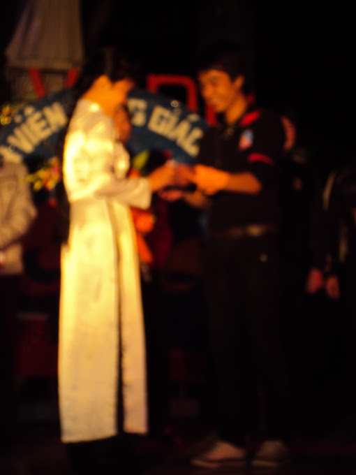Sau buổi văn nghệ là đêm lửa trại. Thời tiết lạnh giá của mùa đông được xóa tan bởi ngọn lửa lớn, bởi những bài cử điệu, những trò chơi thú vị. Tiếng nhạc, tiếng cười vang lên rộn rã giữa đêm đông lạnh lẽo.