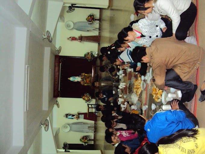 18h tối, công tác chuẩn bị được hoàn tất, mọi người cùng nhau cầu nguyện chuẩn bị bước vào Thánh lễ.