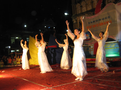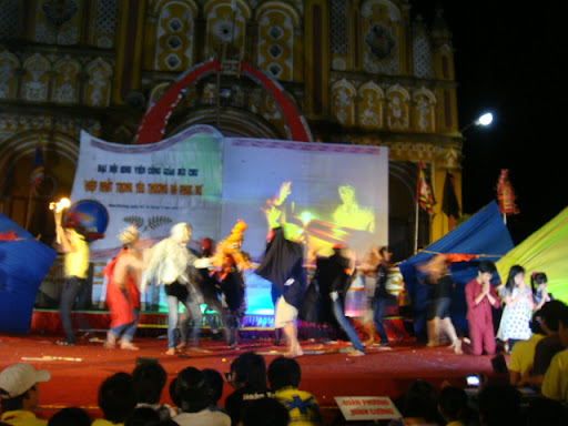Chương trình văn nghệ vẫn được quyết định tổ chức tại sân khấu trung tâm, phía cuối nhà thờ