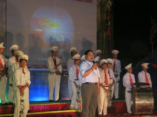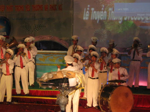 Sau phát biểu khai mạc của Cha Đặc trách, tiếng kèn chào mừng của hội kèn đồng giáo xứ Nam Phương, tiếng kèn vang dội xua tan đi mưa gió bão tố đang làm cản trở buổi văn nghệ