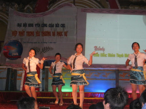 2 MC của chúng ta đã trở lại sân khấu, cám ơn Cha Đặc trách và Hội kèn đồng. Ngay sau đây, tiết mục “Dòng Máu Lạc Hồng” mở đầu văn nghệ sẽ được gửi tới quý Cha, quý ban ngành, các bạn sinh viên và bà con giáo dân qua sự diễn xuất của các bạn sinh viên giáo miền Nam Phương – Trùng Phương