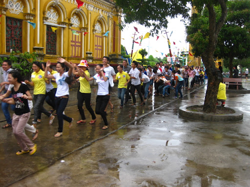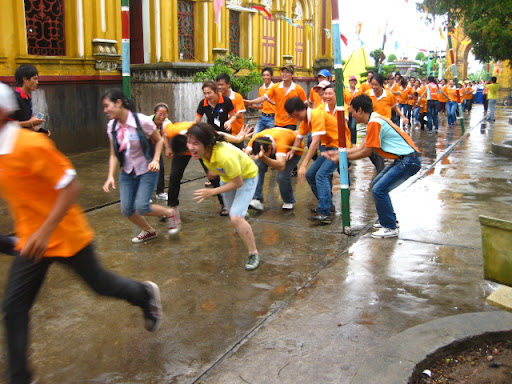 Trời mưa do ảnh hưởng của bão nhưng với tinh thần hăng say, tất cả vì lễ truyền thống, các bạn sinh viên của chúng ta đang hòa mình vào nhịp điệu của các bài hát cử điệu sôi nổi, các trò chơi thú vị