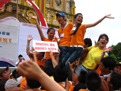 Trong khi các bạn sinh viên từ khắp các ngả đường của giáo phận đang trên đường về giáo xứ Nam Phương, các Linh hoạt viên đang hâm nóng thêm tinh thần của các bạn sinh viên đã đến, đang đến